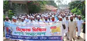 মহানবী (সাঃ) এর কটুক্তিকারী হিন্দু পুরোহিত রামগিরি মহারাজ এবং তাকে সমর্থনকারী বিজেপির বিধায়ক নিতেশ নারায়নকে গ্রেপ্তার ও শাস্তির দাবি জানিয়ে নেত্রকোনার দুর্গাপুরে এক বিক্ষোভ সমাবেশ অনুষ্ঠিত হয়েছে। বুধবার দুপুরে উপজেলা ঈমান আক্বিদা সংরক্ষণ কমিটির আয়োজনে এ সমাবেশ অনুষ্ঠিত হয়।