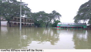 দুর্গাপুর উপজেলার সাত ইউনিয়নের মধ্যে পাঁচ ইউনিয়নে পাহাড়ী ঢল নেমে নি¤œাঞ্চলে প্লাবিত হয়ে গেছে। এতে প্রায় ৩০-৪০টি গ্রামের মানুষ পানিবন্দী হয়ে পড়েছে। স্থানীয়রা বলছেন, চারদিক পানিতে থইথই করছে। বাড়ি থেকে বের হওয়ার রাস্তাও রয়েছে পানির নিচে। ঘরের চার দিকেই পানি সে পানি, চারদিকে বাড়ছে দুর্ভোগ।পানি উন্নয়ন বোর্ডে সূত্রে জানা গেছে, গত কয়েক দিনের টানা ভারী বর্ষণ আর উজান থেকে নেমে আসা পাহাড়ি ঢলে সোমেশ্বরী নদীর পানি বৃদ্ধি পেয়ে বিভিন্ন ইউনিয়নের নি¤œাঞ্চাল গুলো প্লাবিত হয়েছে। সোমেশ্বরী নদীর দুর্গাপুর পয়েন্টে গতকাল আজ রবিবার সকাল ৯টা নাগাদ ১৫ ঘণ্টায় ৫০ সেন্টিমিটার পানি বেড়েছে। বর্তমানে নদীটির পানি বিপৎসীমার শূন্য দশমিক ৩০ সেন্টিমিটার নিচ দিয়ে প্রবাহিত হচ্ছে। নদীটিতে গড়ে ঘণ্টায় সাড়ে তিন সেন্টিমিটার পানি বেড়ে চলছে।রোববার সকালে সরেজমিনে গিয়ে দেখা গেছে, সোমেশ্বরী ও পার্শ^বর্তী নেতাই নদীর পানি প্রবেশ করে উপজেলার গাঁওকান্দিয়া ইউনিয়নের জাগিরপাড়া, বন্দউষান, মুন্সিপাড়া, আটলা, পূর্বনন্দেরছটি, জাংগালিয়াকান্হাদা, হাতিমারাকান্দা, ভাদুয়া, নাওধারা, দক্ষিন জাগিরপাড়া, অপরদিকে কুল্লাগড়া ইউনিয়নের বিলকাঁকড়াকান্দা, দৌলতপুর, পলাশগড়া, বংশীপাড়া, গাইমারা, কাকৈরগড়া ইউনিয়নের, গোদারিয়া, বিলাশপুর, লক্ষীপুর, রামবাড়ি, দুর্গাশ্রম এবং চÐিগড় ইউনিয়নের সাতাশি, চারিখাল, নীলাখালী, ফুলপুর এবং বাকলজোড়া ইউনিয়নের বিভিন্ন গ্রাম সহ প্রায় ৪৫ গ্রাম প্লাবিত হয়েছে। এসব ইউনিয়নের বিভিন্ন গ্রামের প্রায় ৫০ হাজার মানুষ পানি বন্দি অবস্থায় জীবনযাপন করছেন। রাস্তা, মাঠ-ঘাট পানিতে তলিয়ে গেছে। স্কুল, মাদ্রাসা, ঘর-বাড়ির চারপাশেই পানি। পানিতে তলিয়ে গেছে ফসলি জমি। বিভিন্ন পুকুর তলিয়ে ভেসেগেছে লক্ষ লক্ষ টাকার মাছ। গবাদি পশু নিয়েও বিপাকে পড়েছেন মানুষের। অপরদিকে এসব এলাকায় দেখা দিয়েছে বিশুদ্ধ পানি ও খাদ্যের সংকট।গাঁওকান্দিয়া ইউনিয়নের ব্যবসায়ী আহাম্মদ আলী বলেন, আমাদের চলাচলের রাস্তায় কোমর পানি, যেভাবে পানি বাড়ছে তাতে ভয় হচ্ছে পরবর্তিতে পরিবার পরিজন নিয়ে কোথায় যাবো। চÐিগড় ইউনিয়নের বাসিন্দা মাসুদুর রহমান ফকির বলেন, আমাদের গ্রামে অনেক মানুষ পানি বন্দী, হাট-বাজারেও যেতে পারছেন না।বাকলজোড়া গ্রামের ইউপি সদস্য মো. আবুল কাশেম বলেন, ফসলী জমি ৮০% পানির নিচে এখন। তাছাড়াও চলাচলের প্রায় সব রাস্তায় পানির নিচে। যেভাবে পানি বাড়ছে তাতে ঘরে পানি ডুকে যাবে মনে হচ্ছে।উপজেলা মৎস কর্মকর্তা শিরিন আক্তার বলেন, পাহাড়ী ঢলে ৫টি ইউনিয়নের প্রায় শতাধিক পুকুর তলিয়ে গেছে। এতে বিভিন্ন প্রজাতির মাছ ভেসে গেছে। ক্ষতির পরিমান প্রায় ৫০ লক্ষ ট